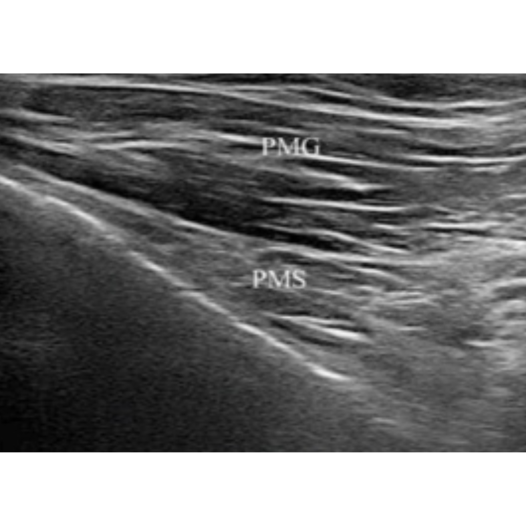 Imagen 2: Corte transversal. : músculo pectoral mayor(PMG) y músculo pectoral meno (PMS)