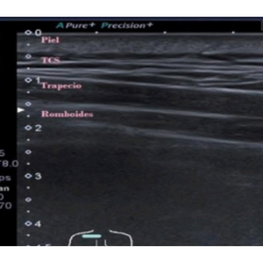 Imagen 3: Desde superficial a profundo: piel-subcutáneo-trapecio-supraespinoso-escápula.
